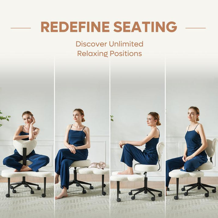 Answer 1: The ergonomic design of this chair features a thickened crescent-shaped backrest that provides optimal lumbar support, aligning your spine to relieve stress during extended sitting. This design allows for comfortable positions such as cross-legged, squatting, or kneeling, making it ideal for long work hours, meditation, or relaxation without sacrificing support.